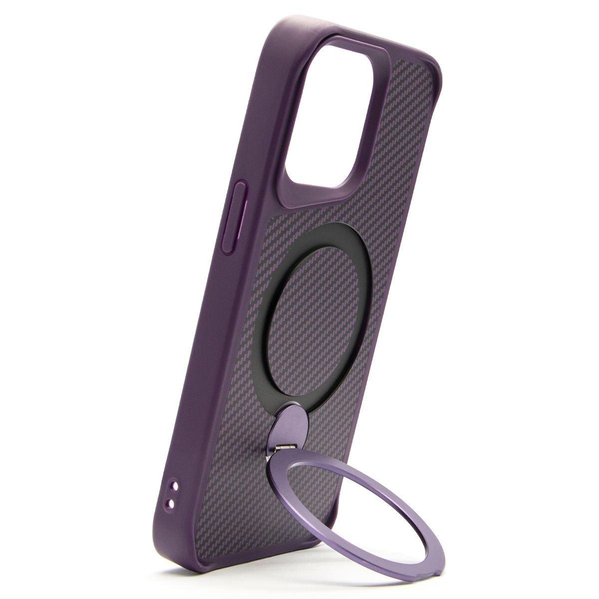 Brilliance LUX iPhone 13 Pro 360° Rotating Magnetic Metal Bracket Carbon Fiber Pattern Matte PC+TPU Phone case Purple