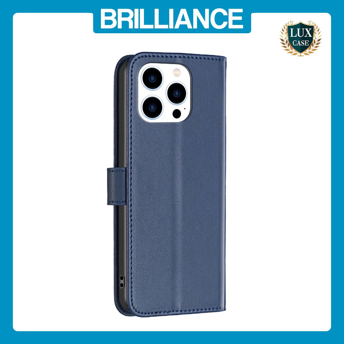 Brilliance LUX iPhone 13 Pro Flip Book PU Genuine Leather Detachable Strong Magnetic Wallet with Card Pockets Case Blue