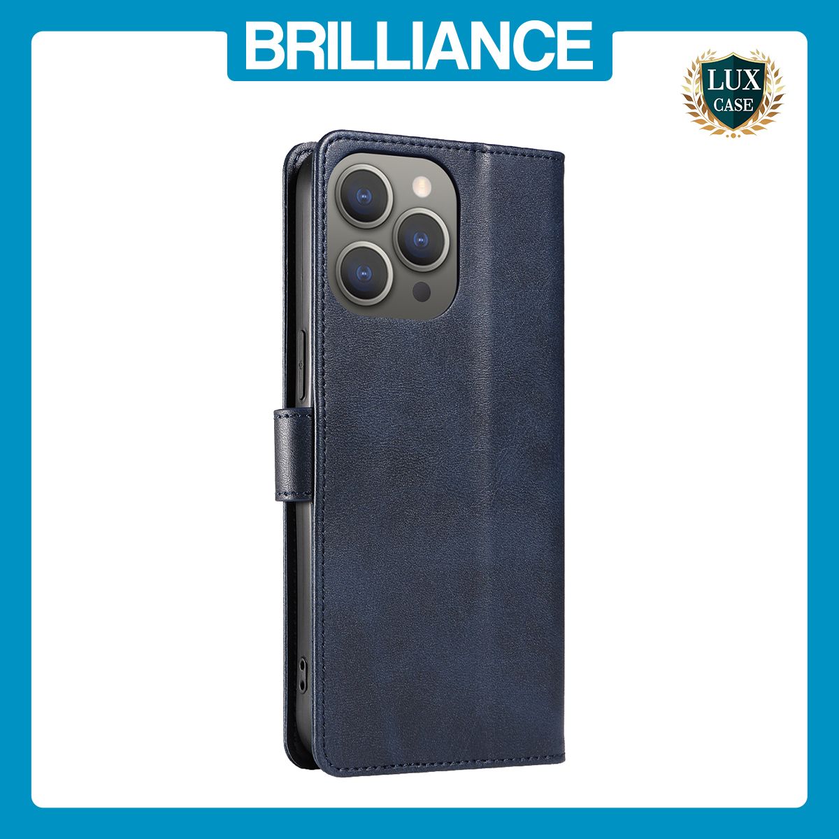 Brilliance LUX iPhone 13 Pro Max Book Flip Soft PU Leather Wallet with Card Pockets Case Blue