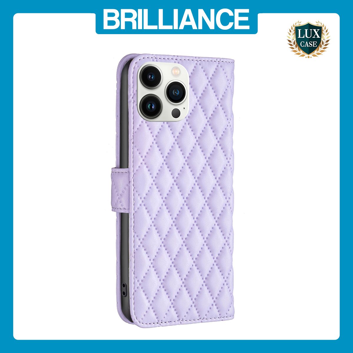 Brilliance LUX iPhone 13 Pro Max Flip Book PU real Leather Wallet Holder & Kickstand with Card Pockets Case Purple