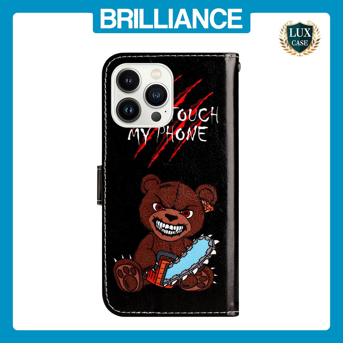 Brilliance LUX iPhone 13 Pro Max Flip PU Leather Wallet 3D Print Bear with Wrist Strap Case