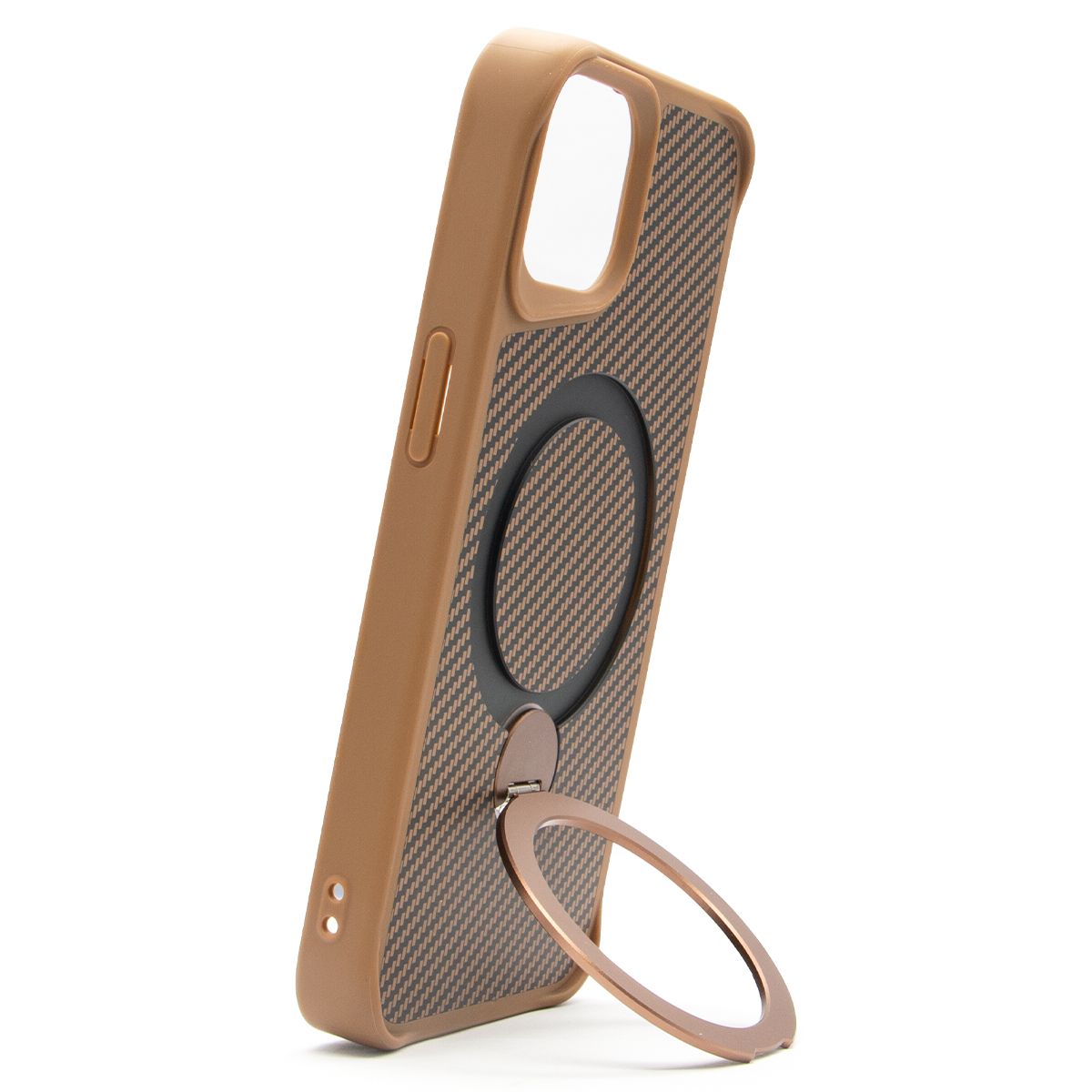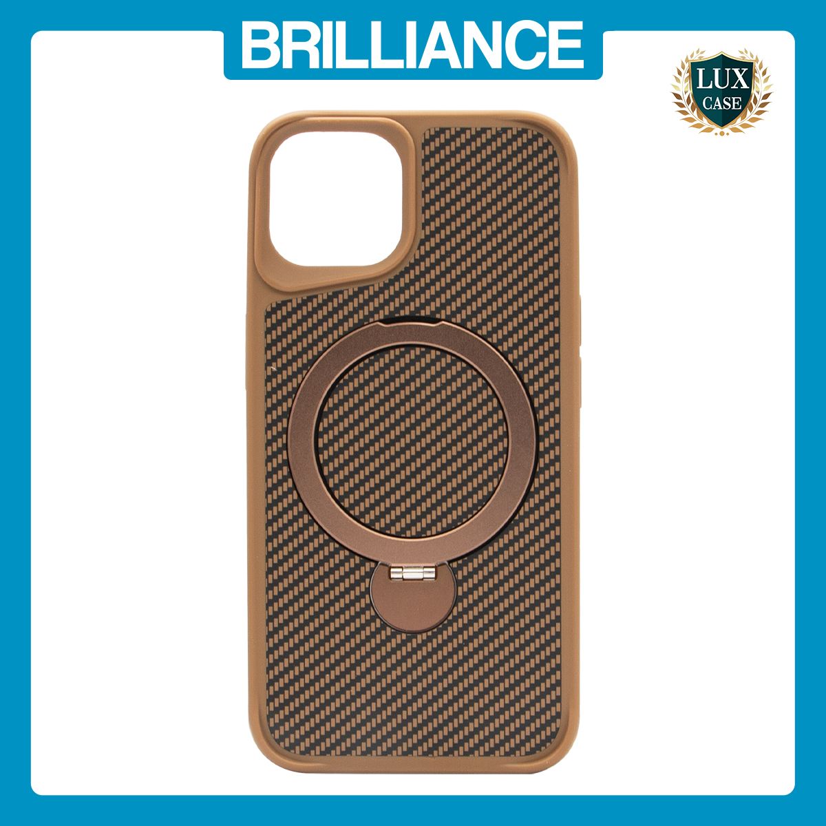 Brilliance LUX iPhone 14 360° Rotating Magnetic Metal Bracket Carbon Fiber Pattern Matte PC+TPU Phone case Gold