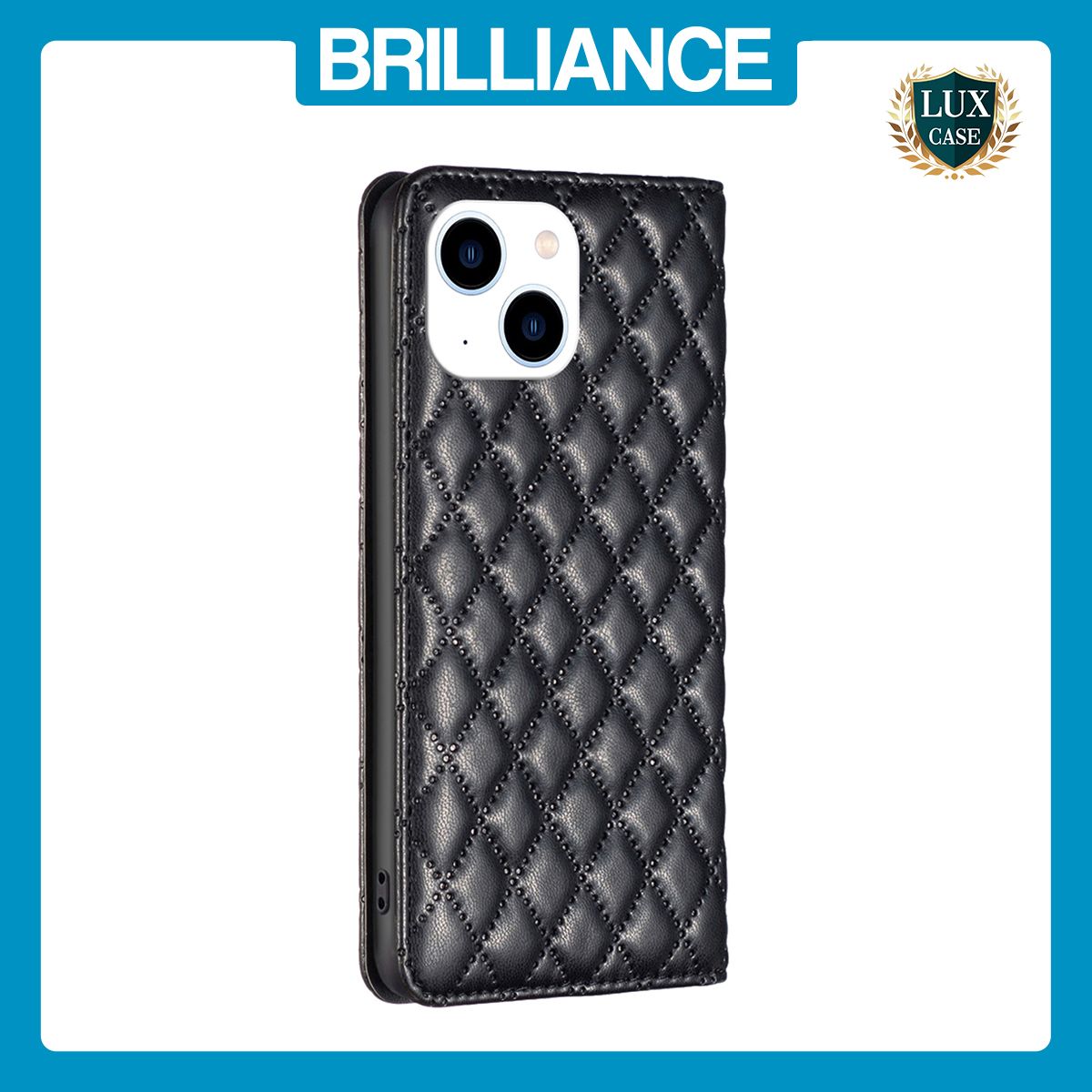 Brilliance LUX iPhone 14 Flip PU Leather Holder Slots Magnetic Wallet with Card Pockets Case Black