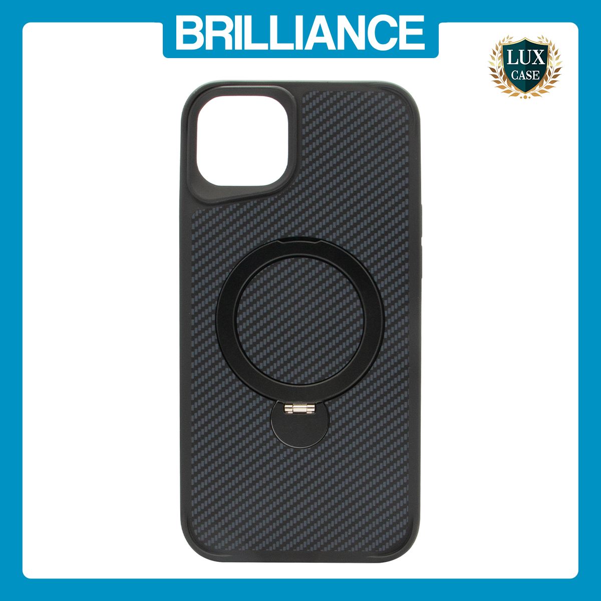 Brilliance LUX iPhone 14 Plus 360° Rotating Magnetic Metal Bracket Carbon Fiber Pattern Matte PC+TPU Phone case Black