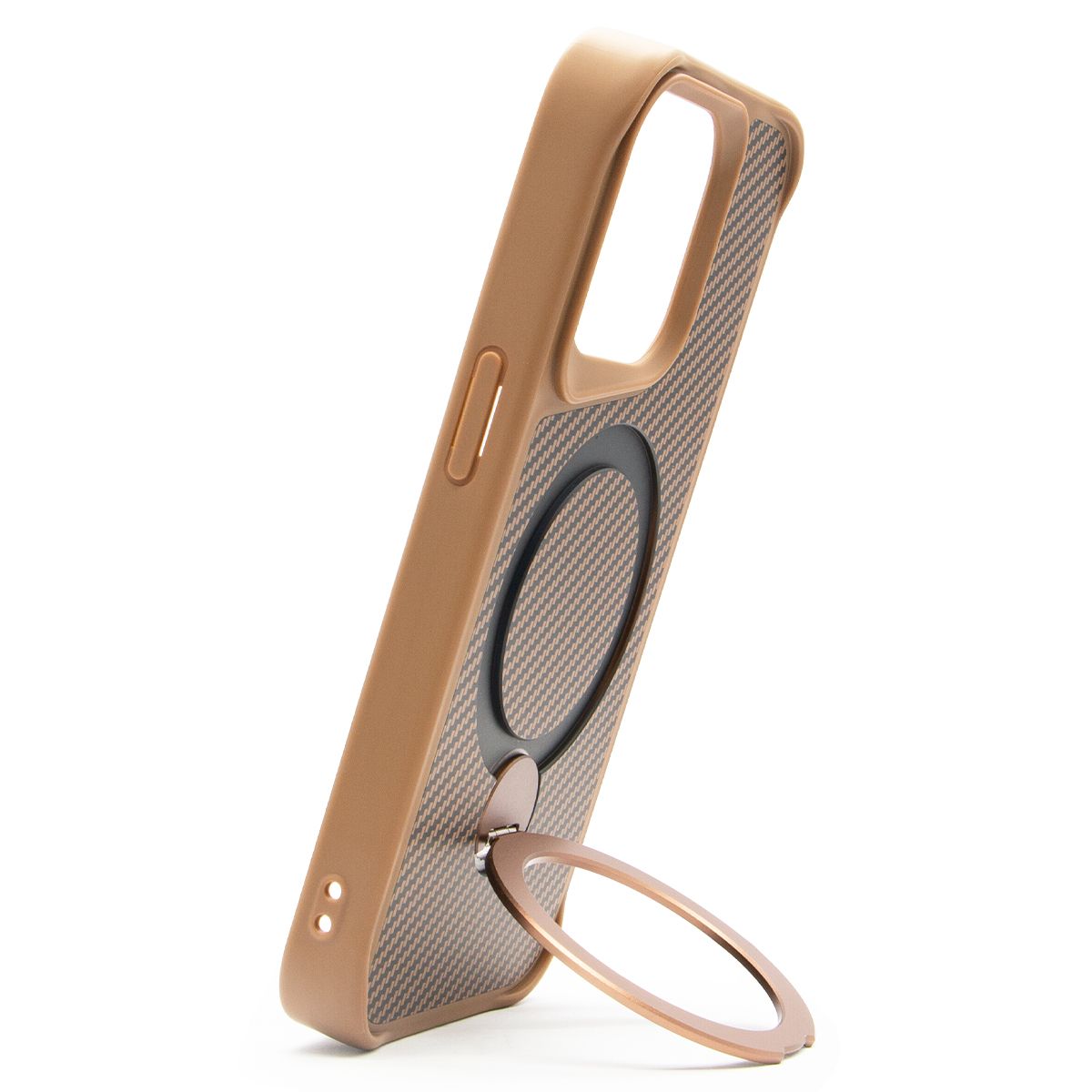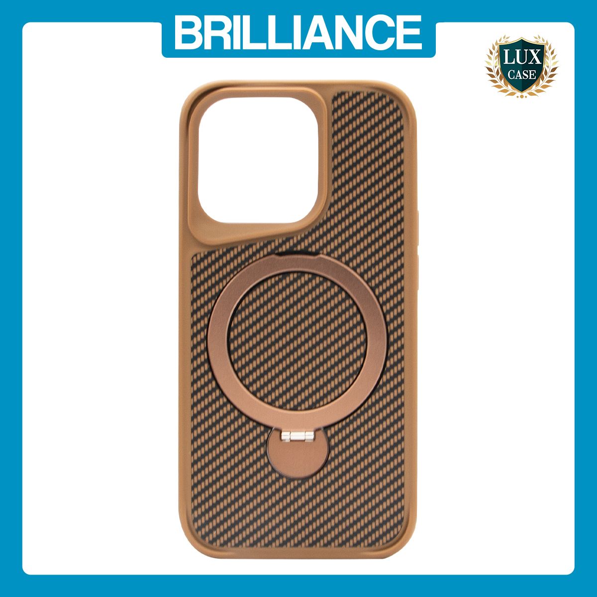 Brilliance LUX iPhone 14 Pro 360° Rotating Magnetic Metal Bracket Carbon Fiber Pattern Matte PC+TPU Phone case Gold