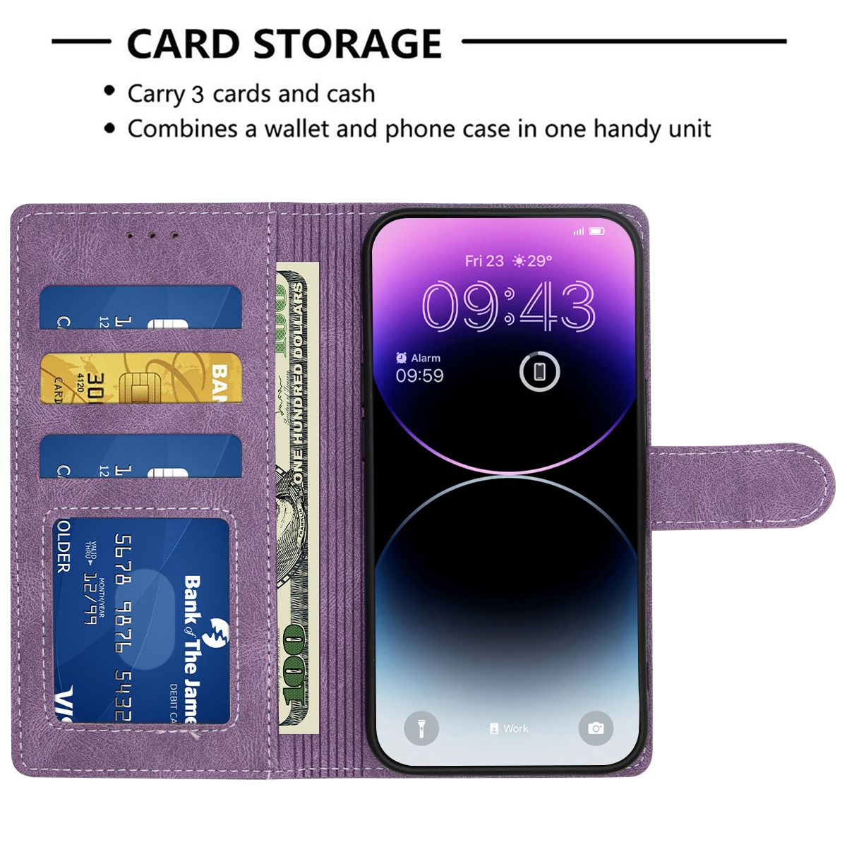Brilliance LUX iPhone 14 Pro Flip Premium PU Leather Wallet Business Style with Card Pockets Case Purple
