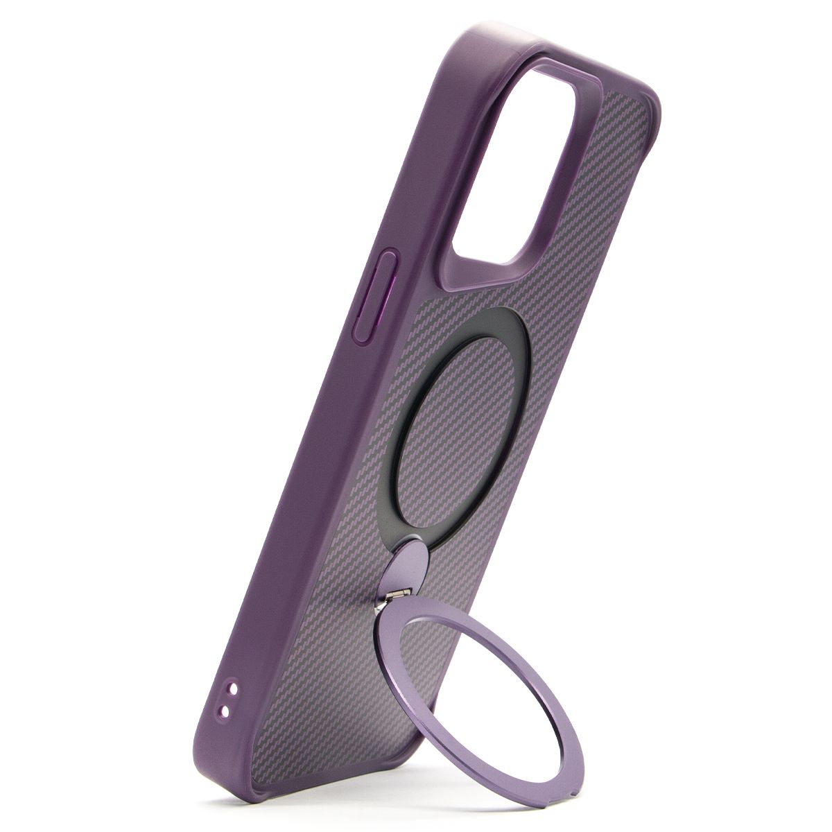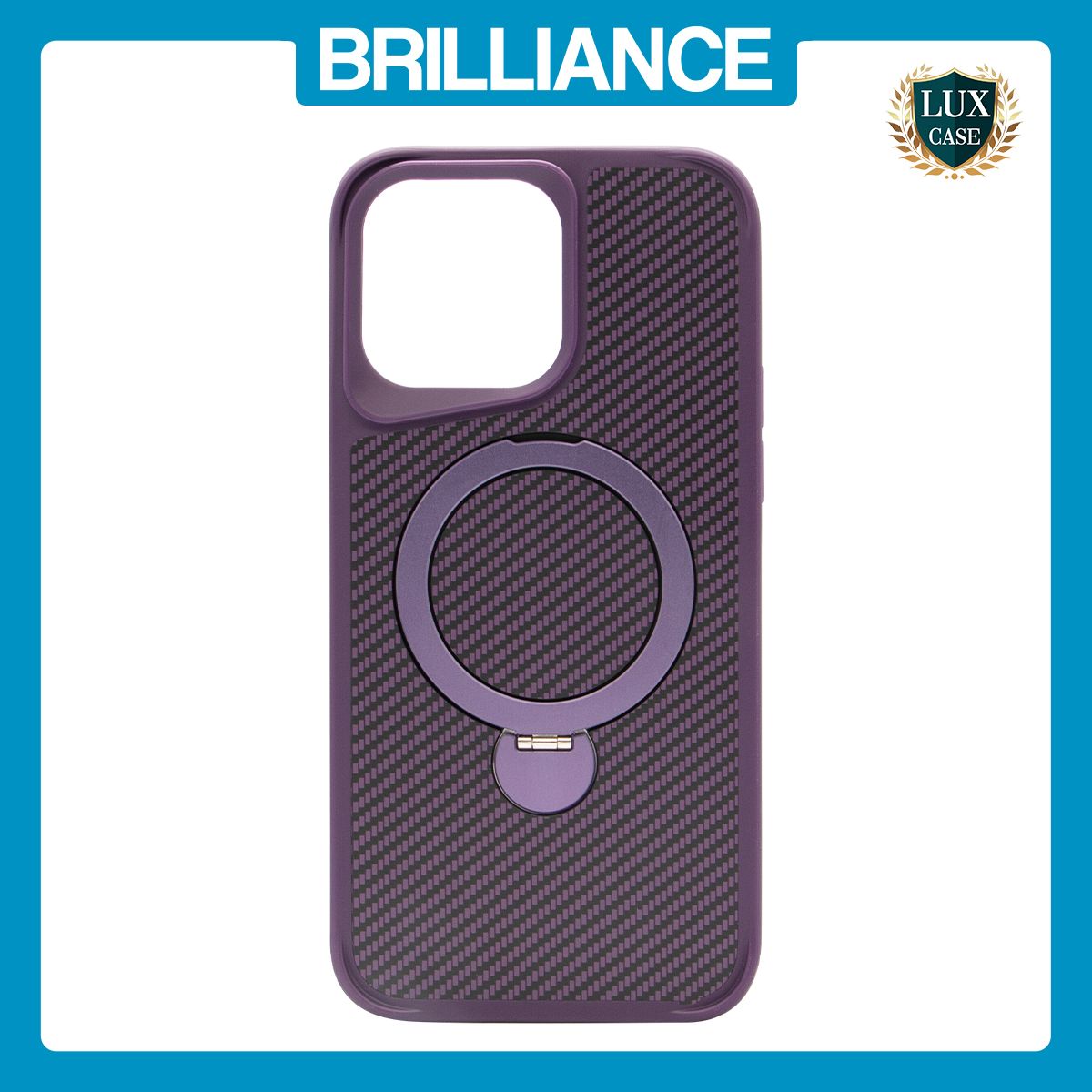 Brilliance LUX iPhone 14 Pro Max 360° Rotating Magnetic Metal Bracket Carbon Fiber Pattern Matte PC+TPU Phone case Purple