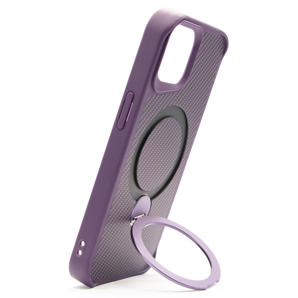 Brilliance LUX iPhone 15 360° Rotating Magnetic Metal Bracket Carbon Fiber Pattern Matte PC+TPU Phone case Purple