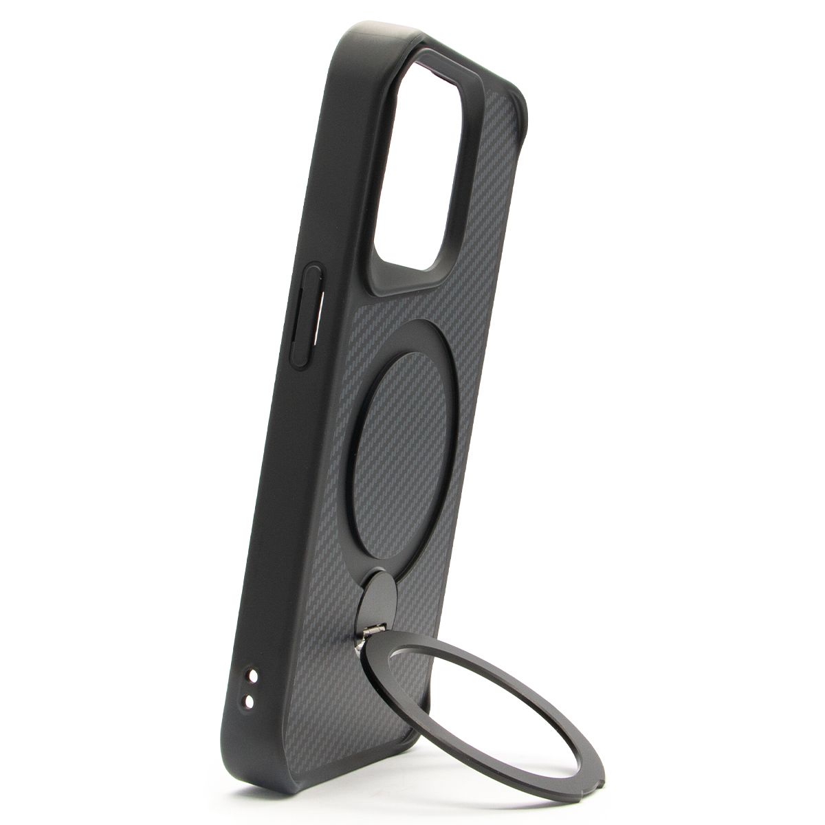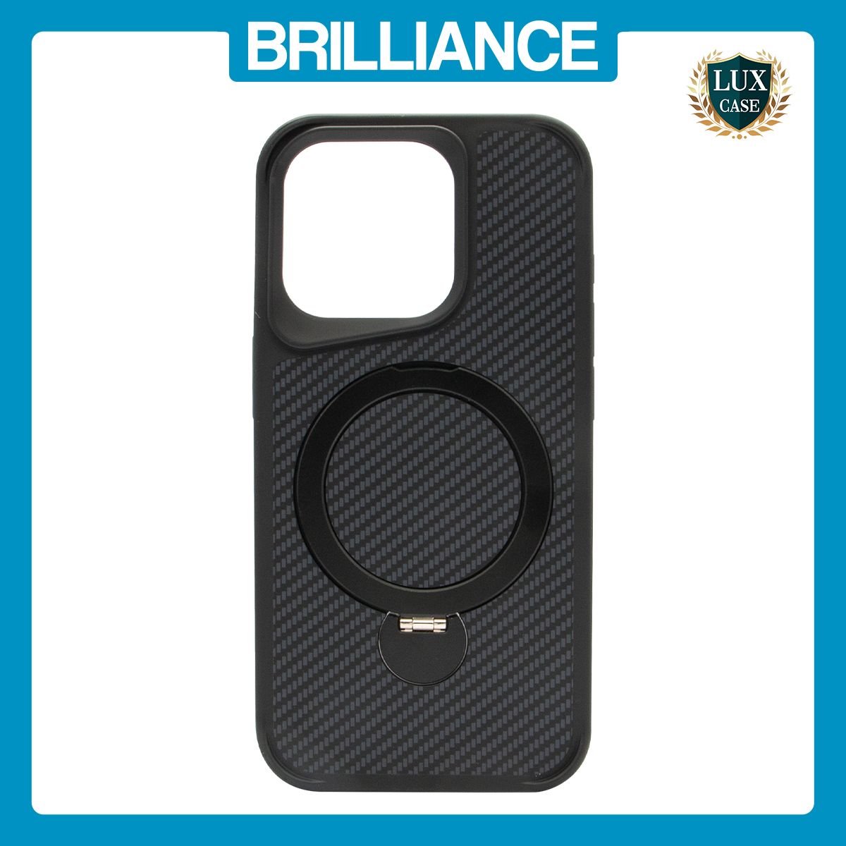 Brilliance LUX iPhone 15 Pro 360° Rotating Magnetic Metal Bracket Carbon Fiber Pattern Matte PC+TPU Phone case Black