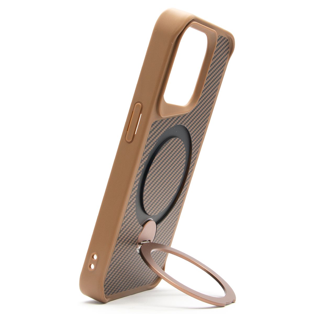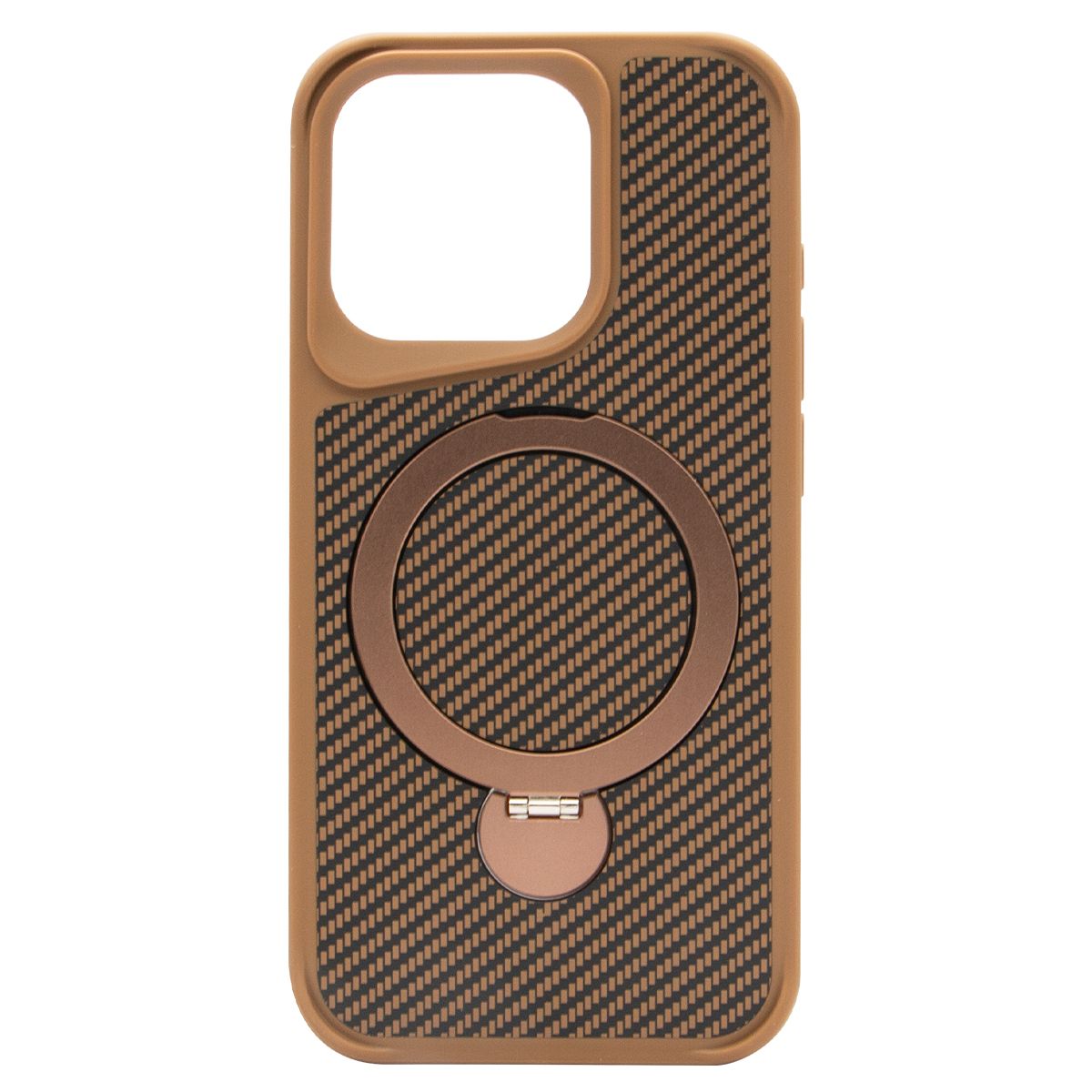 Brilliance LUX iPhone 15 Pro 360° Rotating Magnetic Metal Bracket Carbon Fiber Pattern Matte PC+TPU Phone case Gold