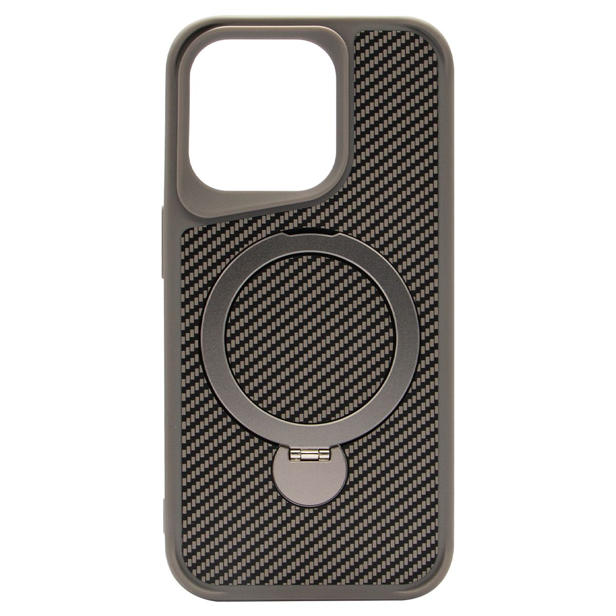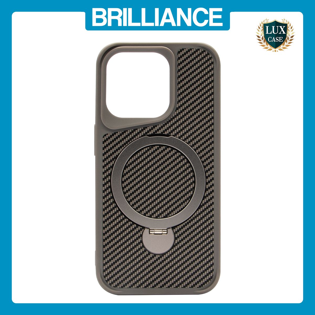 Brilliance LUX iPhone 15 Pro 360° Rotating Magnetic Metal Bracket Carbon Fiber Pattern Matte PC+TPU Phone case Grey