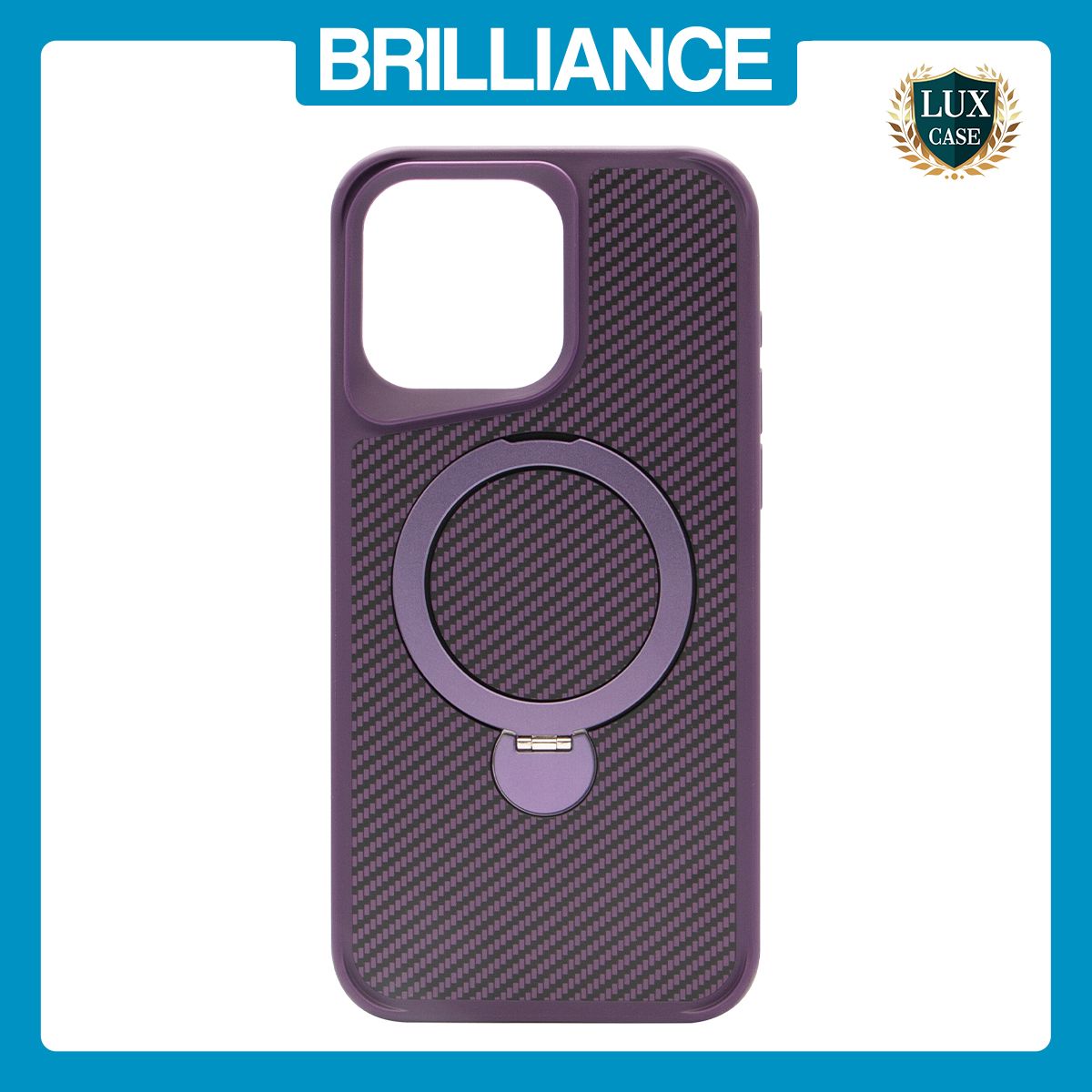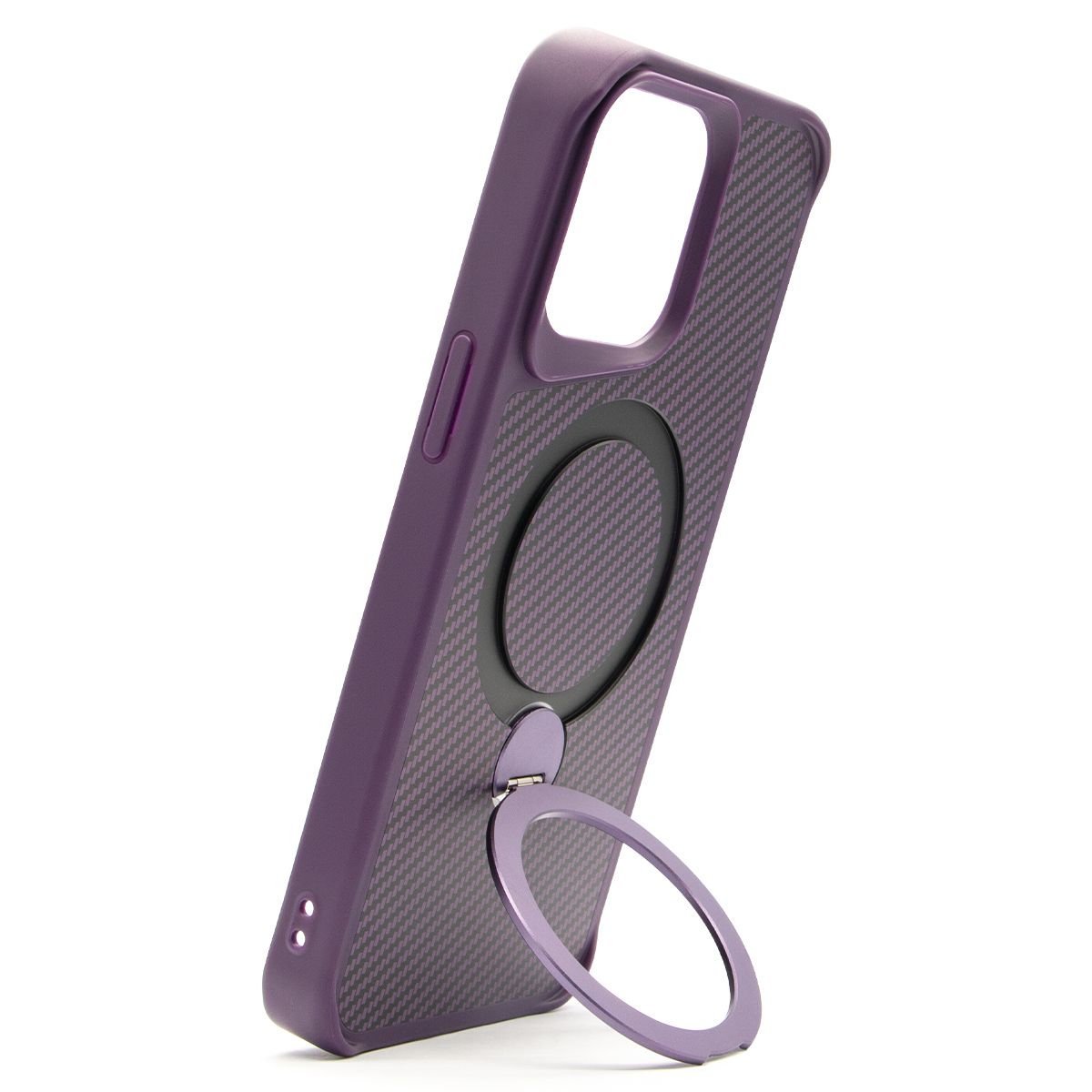 Brilliance LUX iPhone 15 Pro Max 360° Rotating Magnetic Metal Bracket Carbon Fiber Pattern Matte PC+TPU Phone case Purple