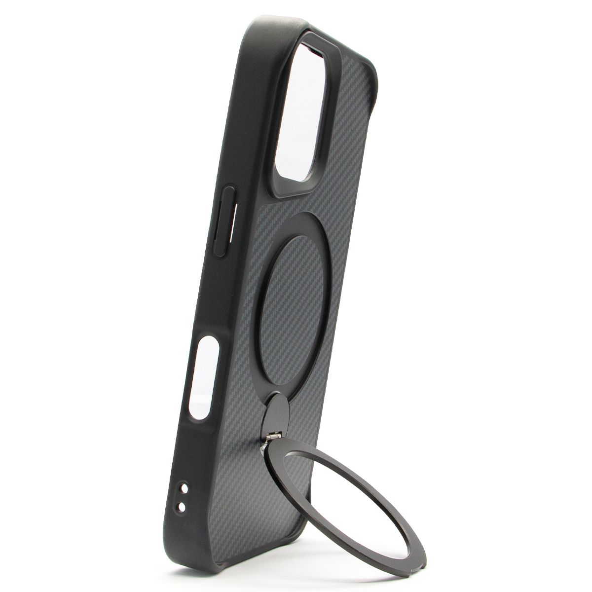 Brilliance LUX iPhone 16 360° Rotating Magnetic Metal Bracket Carbon Fiber Pattern Matte PC+TPU Phone case Black