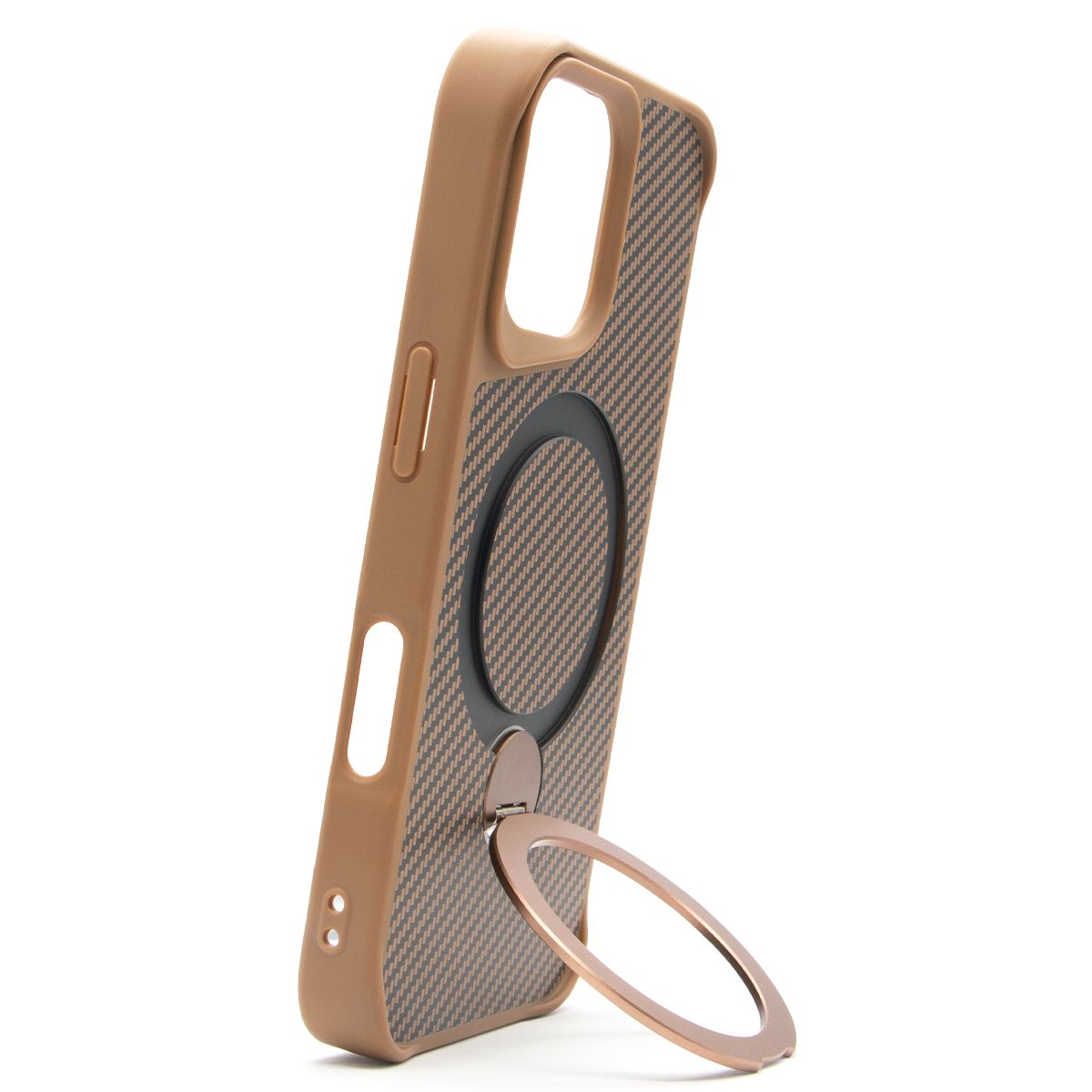 Brilliance LUX iPhone 16 360° Rotating Magnetic Metal Bracket Carbon Fiber Pattern Matte PC+TPU Phone case Gold