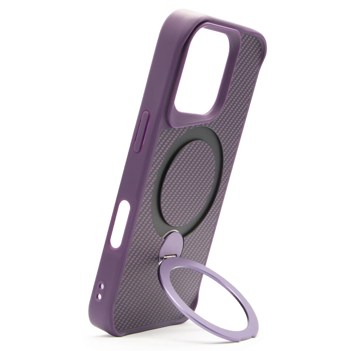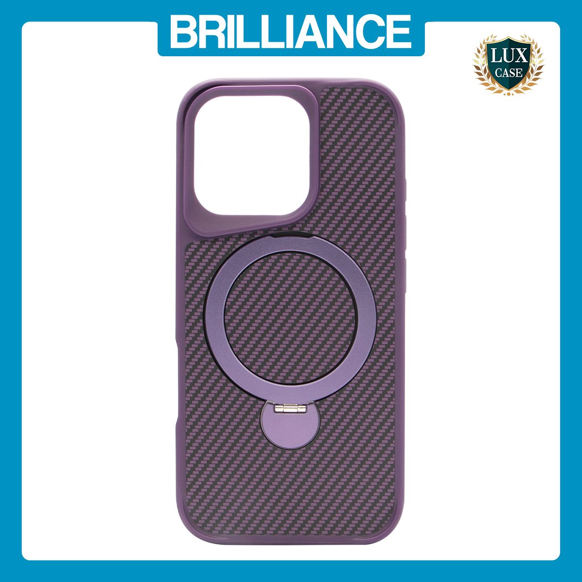 Brilliance LUX iPhone 16 Pro 360° Rotating Magnetic Metal Bracket Carbon Fiber Pattern Matte PC+TPU Phone case Purple