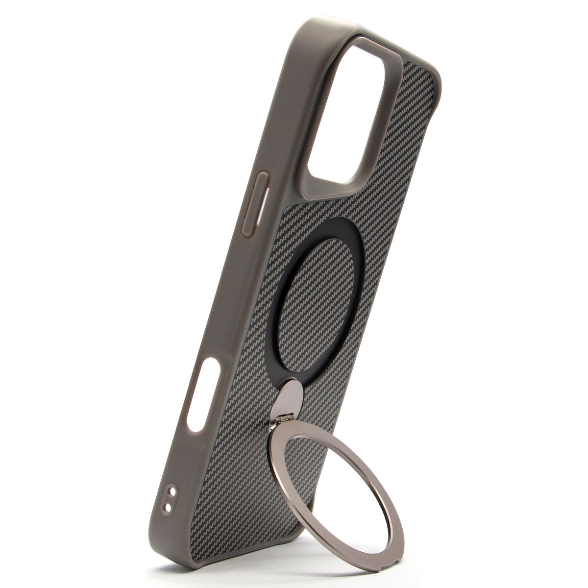 Brilliance LUX iPhone 16 Pro Max 360° Rotating Magnetic Metal Bracket Carbon Fiber Pattern Matte PC+TPU Phone case Grey