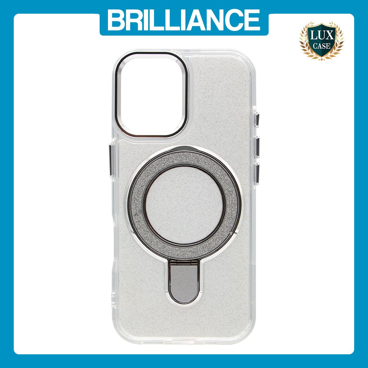 Brilliance LUX iPhone 17 Glitter Sparkle Magnetic Clear TPU + Acrylic with Kickstand Phone Case White