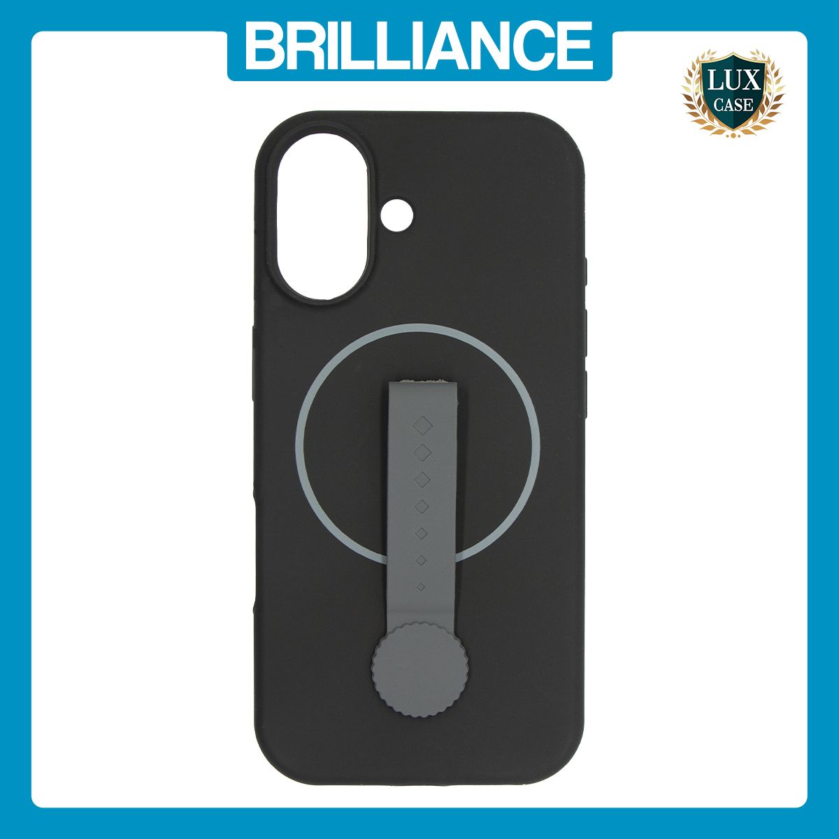 Brilliance LUX iPhone 17 Silicone with BackSide 360° Rotating Wrist Strap Magnetic Phone Case Black