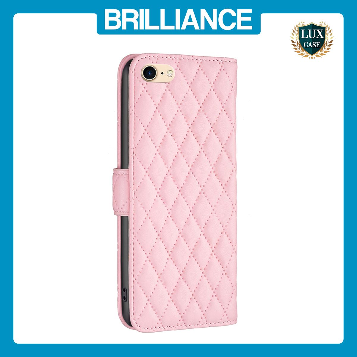 Brilliance LUX iPhone 6/7/8 Flip Book PU real Leather Wallet Holder & Kickstand with Card Pockets Case Pink