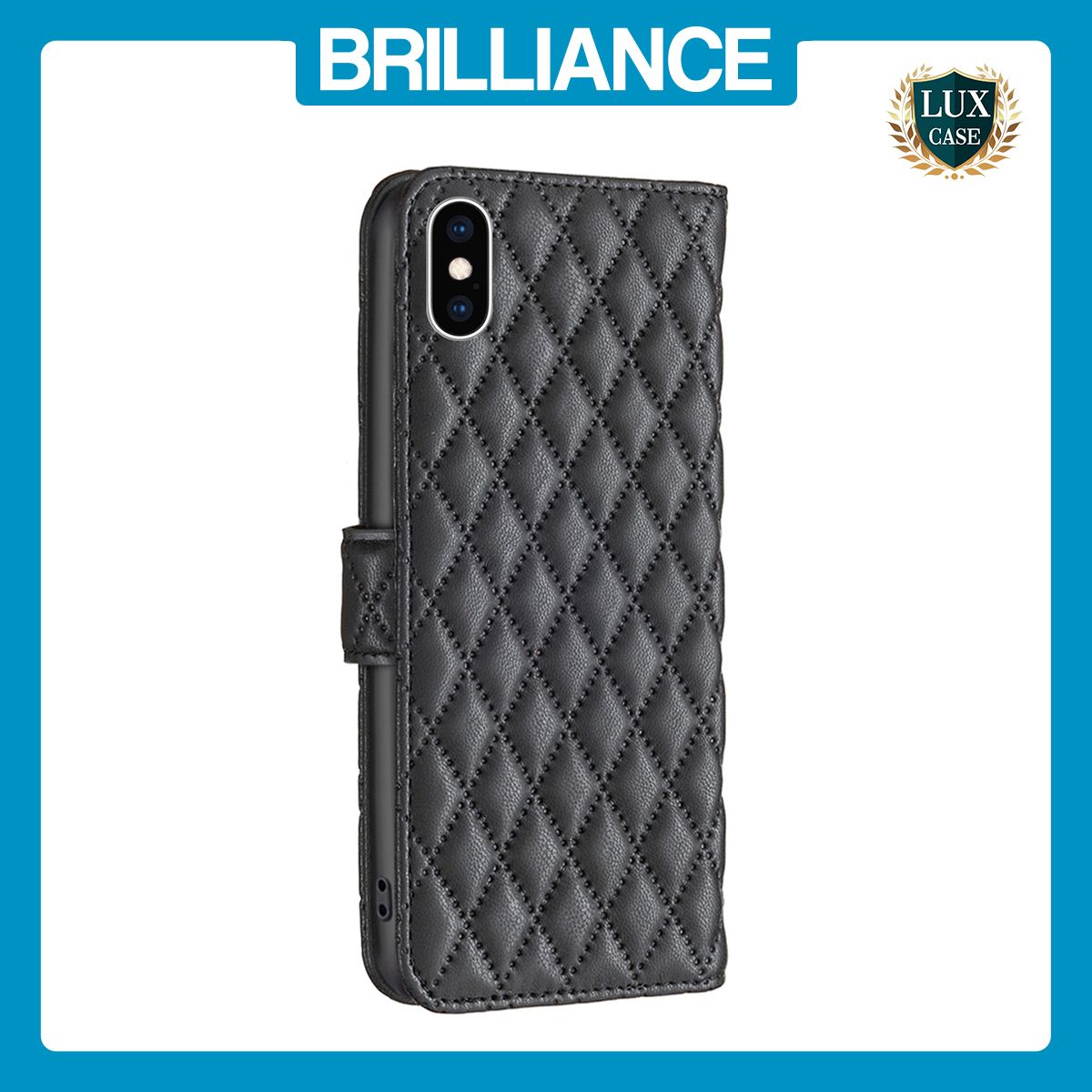 Brilliance LUX iPhone X/XS Flip Book PU real Leather Wallet Holder & Kickstand with Card Pockets Case Black