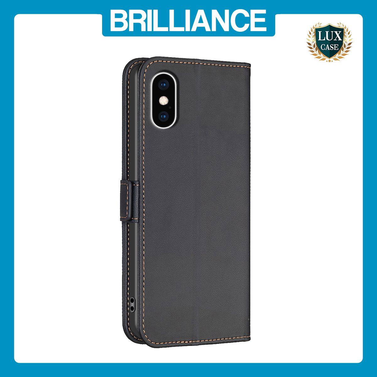 Brilliance LUX iPhone XS Max Flip Book PU Leather Wallet Holder & Stand with Card Pockets Case Black