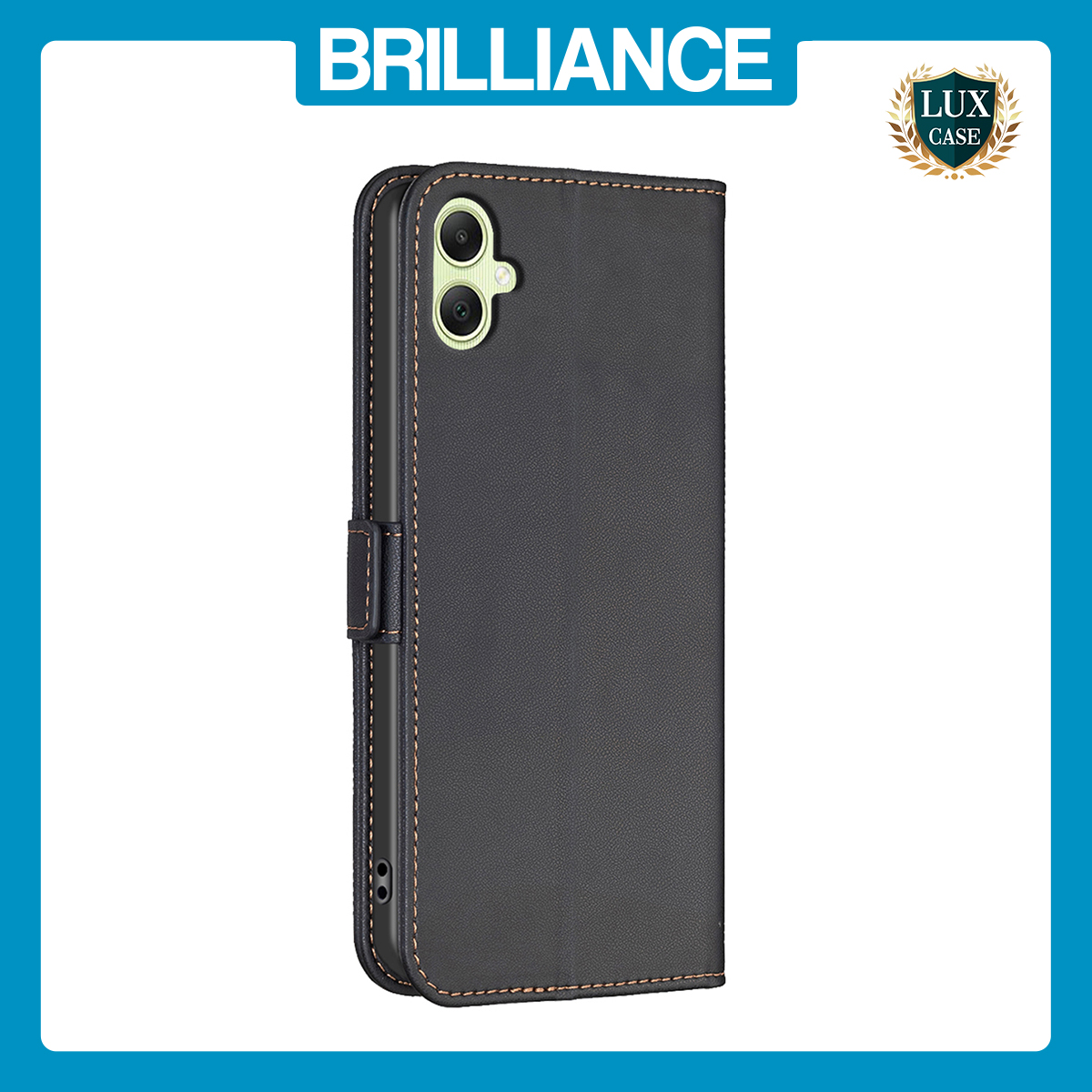 Brilliance LUX Samsung A03S/A02S Flip PU Leather Stitching Colors Dark Magnetic Wallet with Card Pockets Case Black