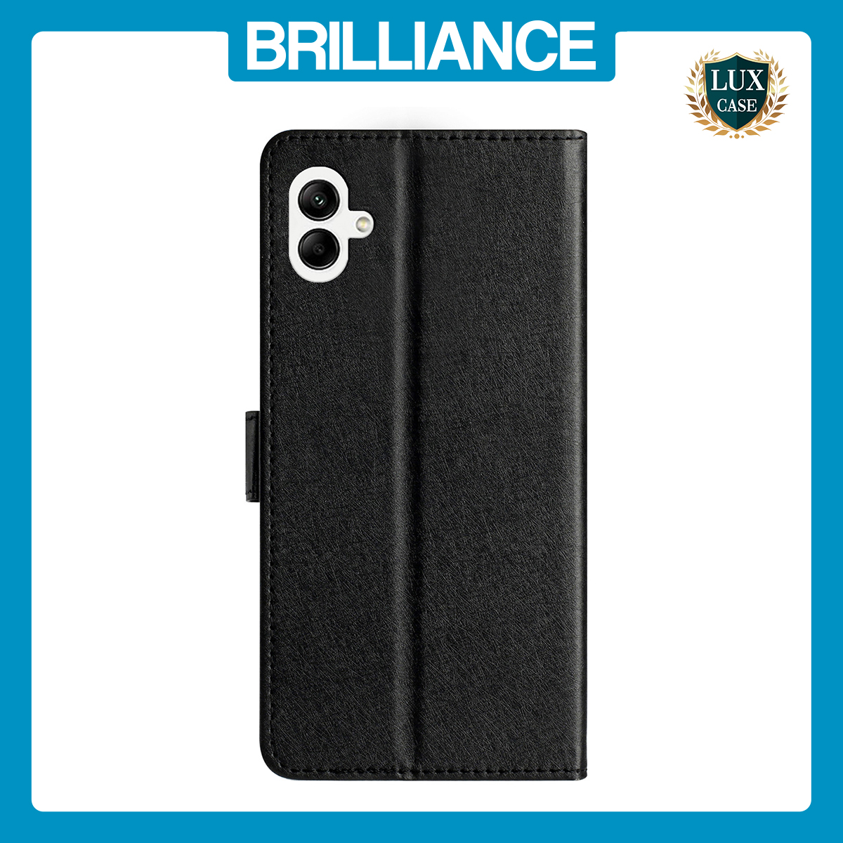 Brilliance LUX Samsung A32 5G Flip PU Leather Stitching Colors Dark Magnetic Wallet with Card Pockets Case Black
