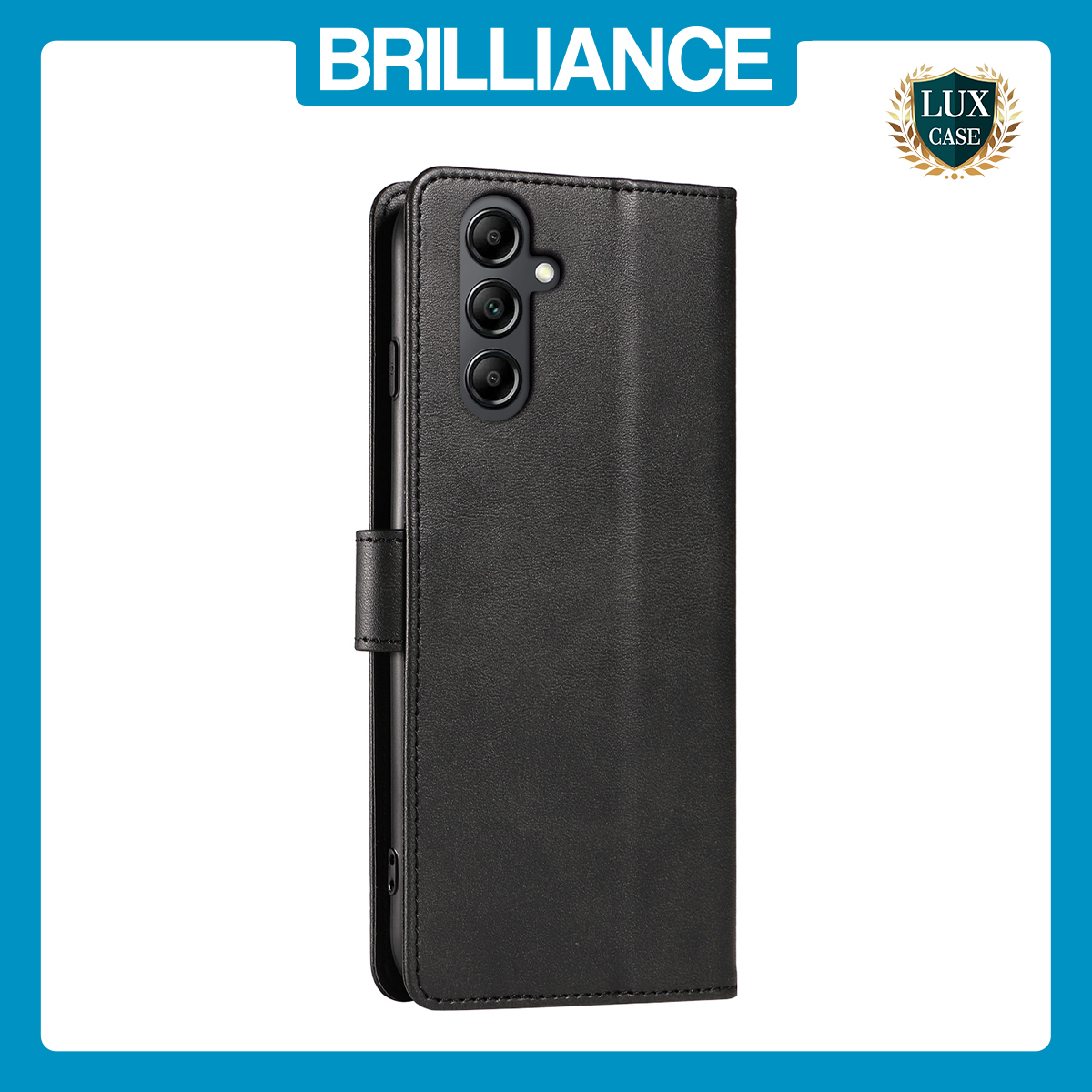 Brilliance LUX Samsung A35 Flip Book PU Leather Wallet Holder & Stand with Card Pockets Case Black