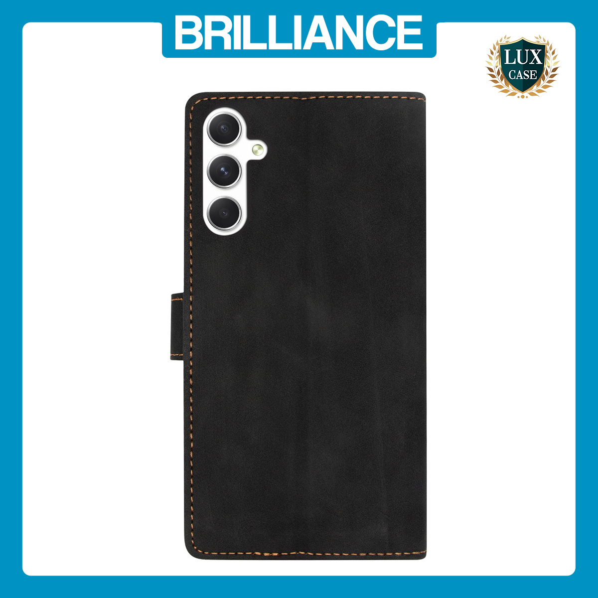 Brilliance LUX Samsung S22 Flip PU Leather Holder Slots Magnetic Wallet with Card Pockets Case Black
