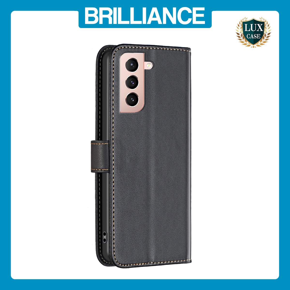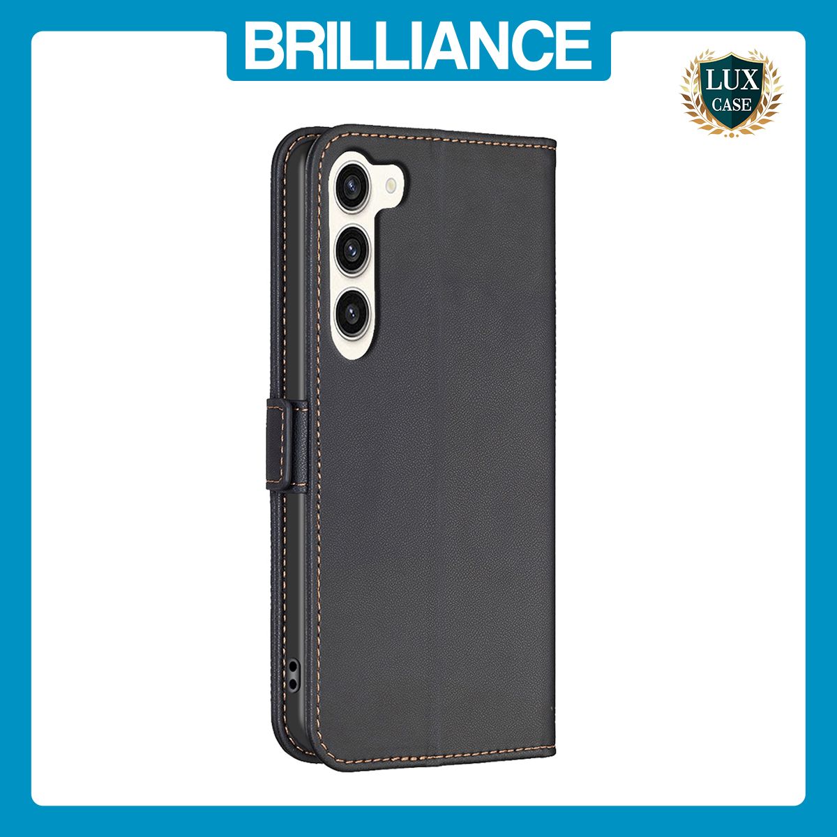 Brilliance LUX Samsung S23 Flip Book PU Leather Wallet Holder & Stand with Card Pockets Case Black