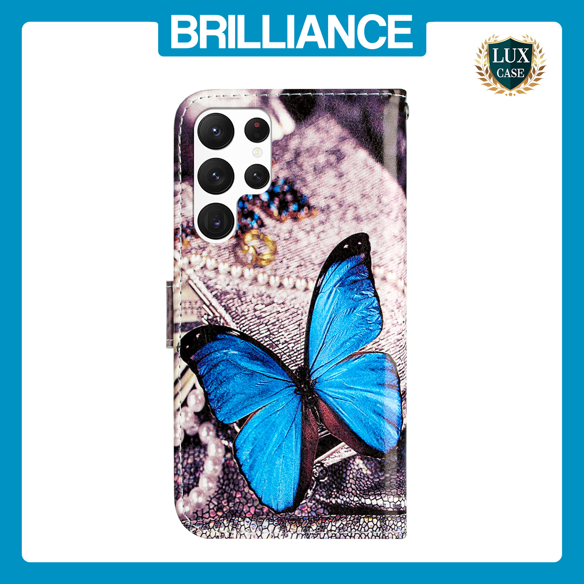 Brilliance LUX Samsung S23 Flip Book PU real Leather Wallet Holder & Kickstand with Card Pockets Case Black