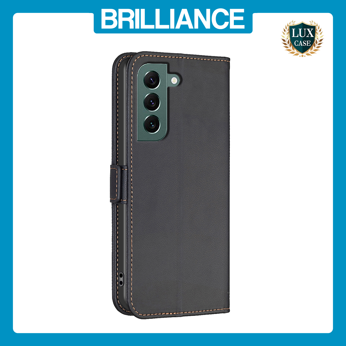 Brilliance LUX Samsung S23 Flip PU Leather Holder Slots Magnetic Wallet with Card Pockets Case Black