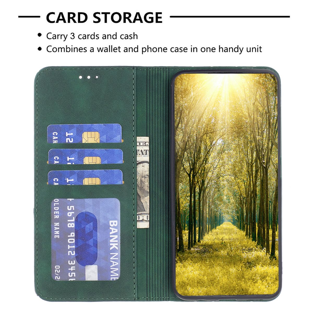 Brilliance LUX Samsung S23 Ulltra Flip PU Leather Stitching Colors Dark Magnetic Wallet with Card Pockets Case Green
