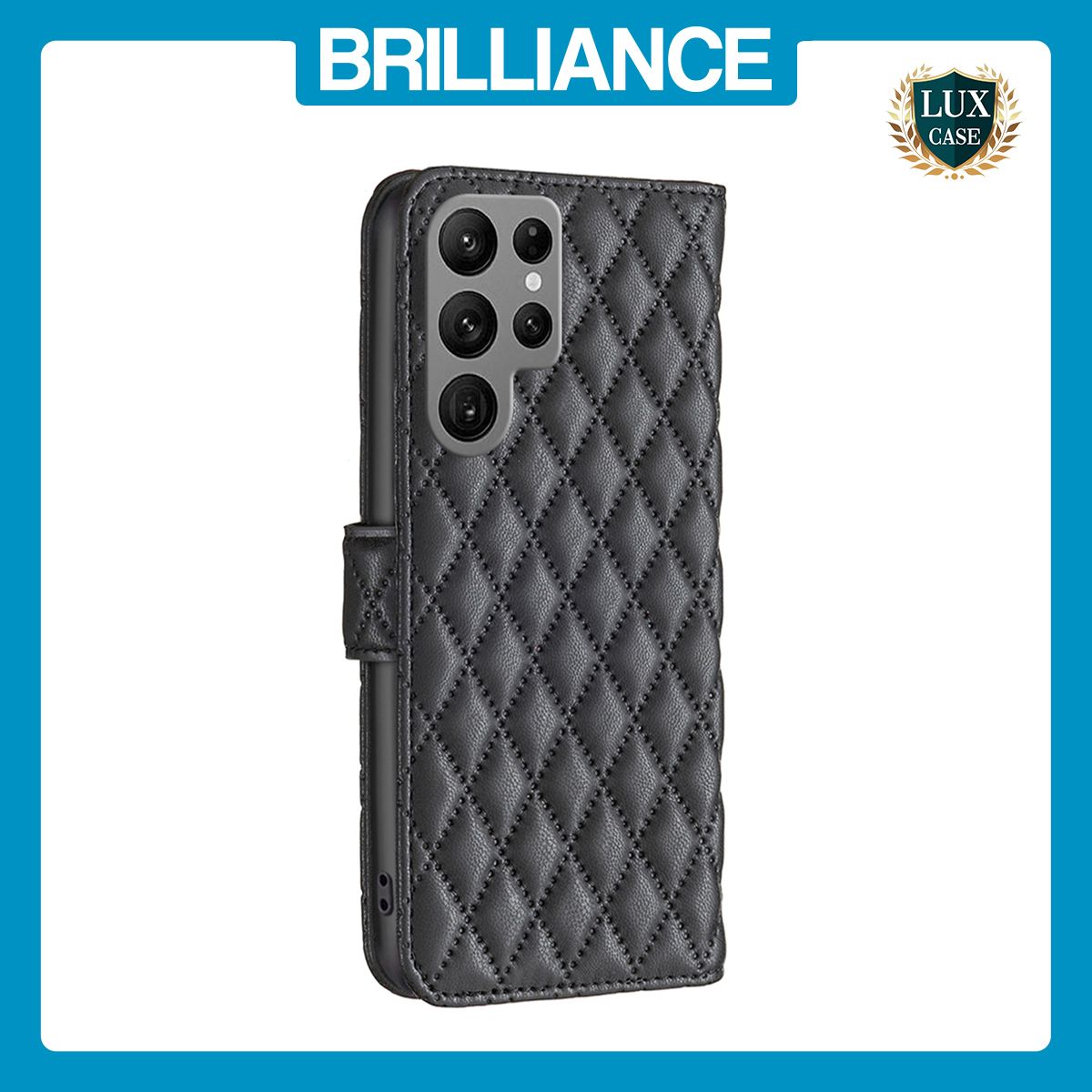Brilliance LUX Samsung S24 Ultra Flip Book PU real Leather Wallet Holder & Kickstand with Card Pockets Case Black