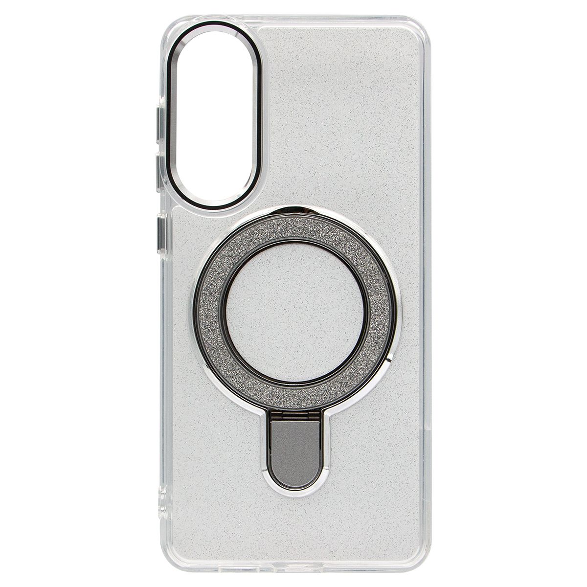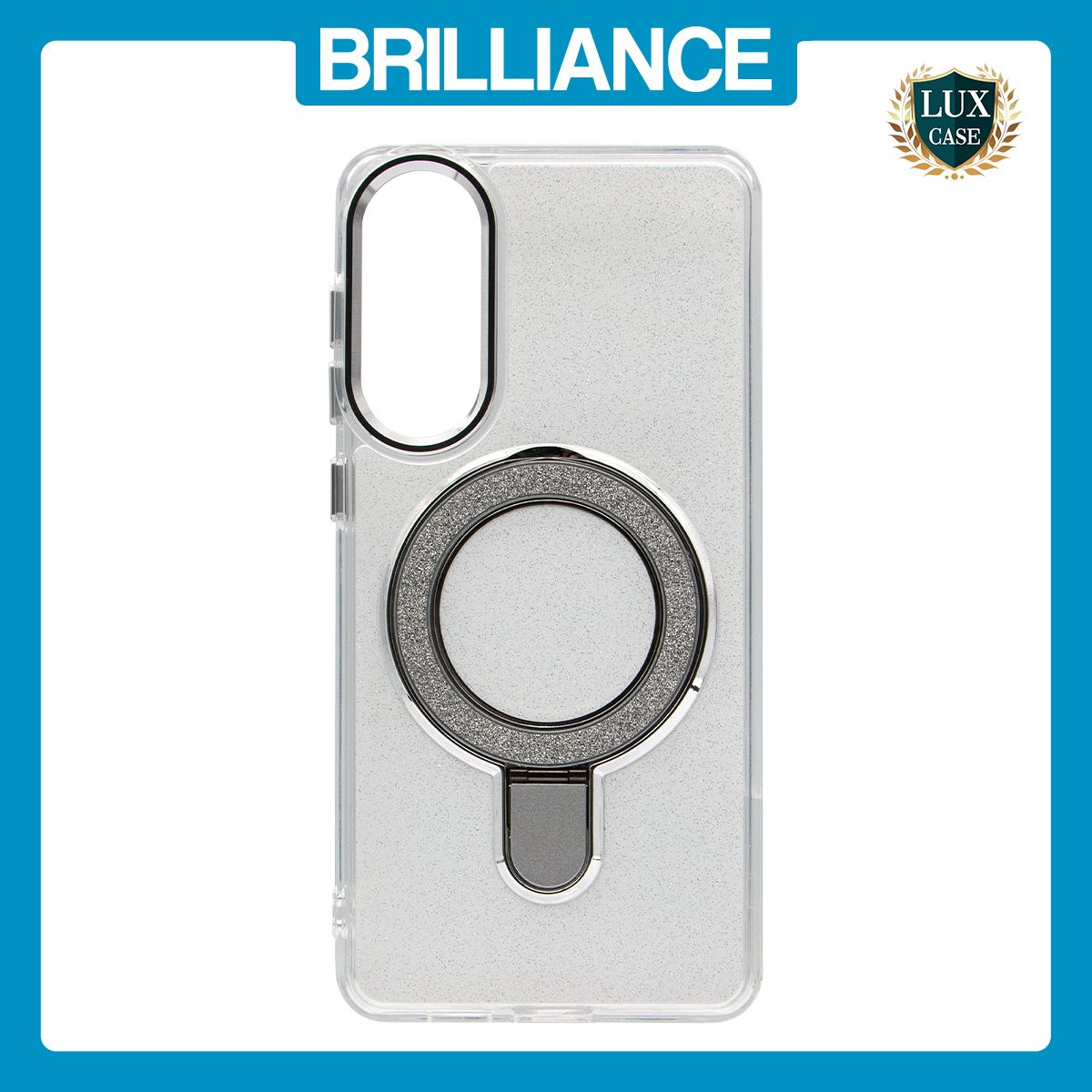 Brilliance LUX Samsung S25 Edge Glitter Sparkle Magnetic Clear TPU + Acrylic with Kickstand Phone Case White