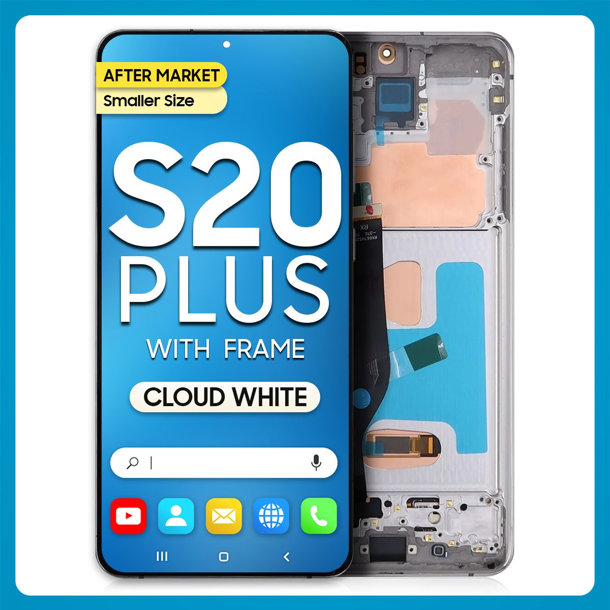 Samsung S20 Plus 5G LCD with Touch + Frame After Market Cloud White (Smaller Size)