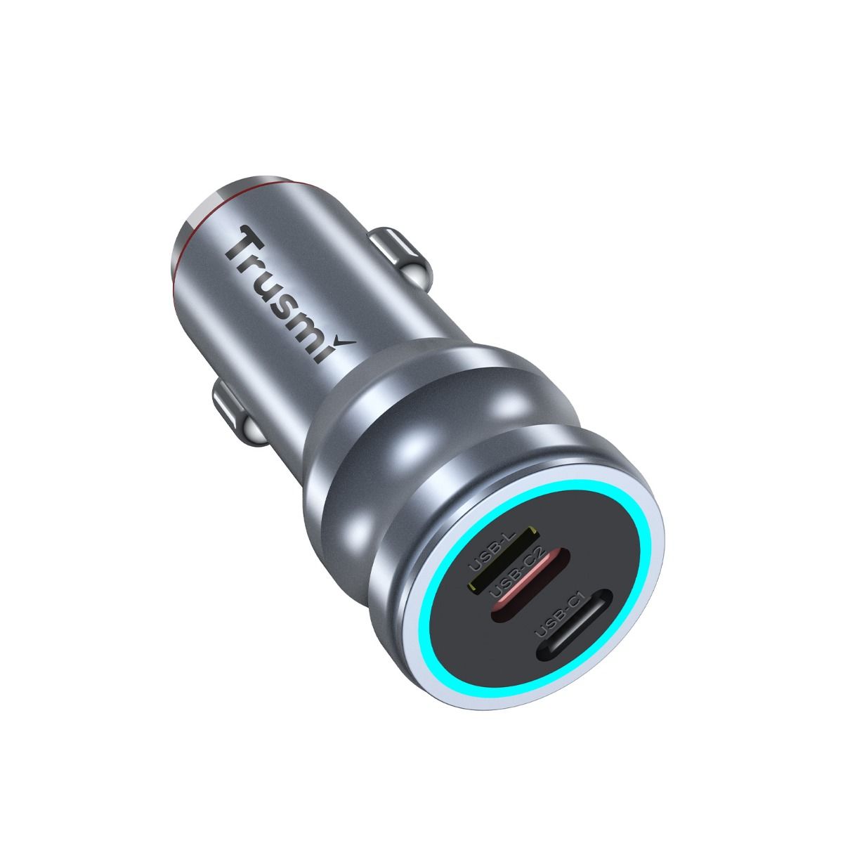 TRUSMI 55W 2 Type C & USB-L Metal Car Charger Sliver