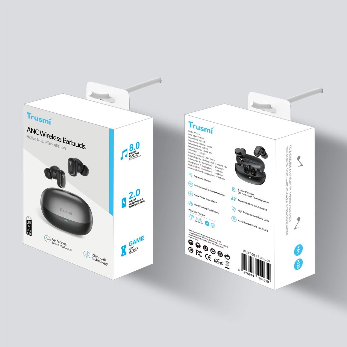 TRUSMI ANC+ENC Dual Mic True Wireless Headphones Black