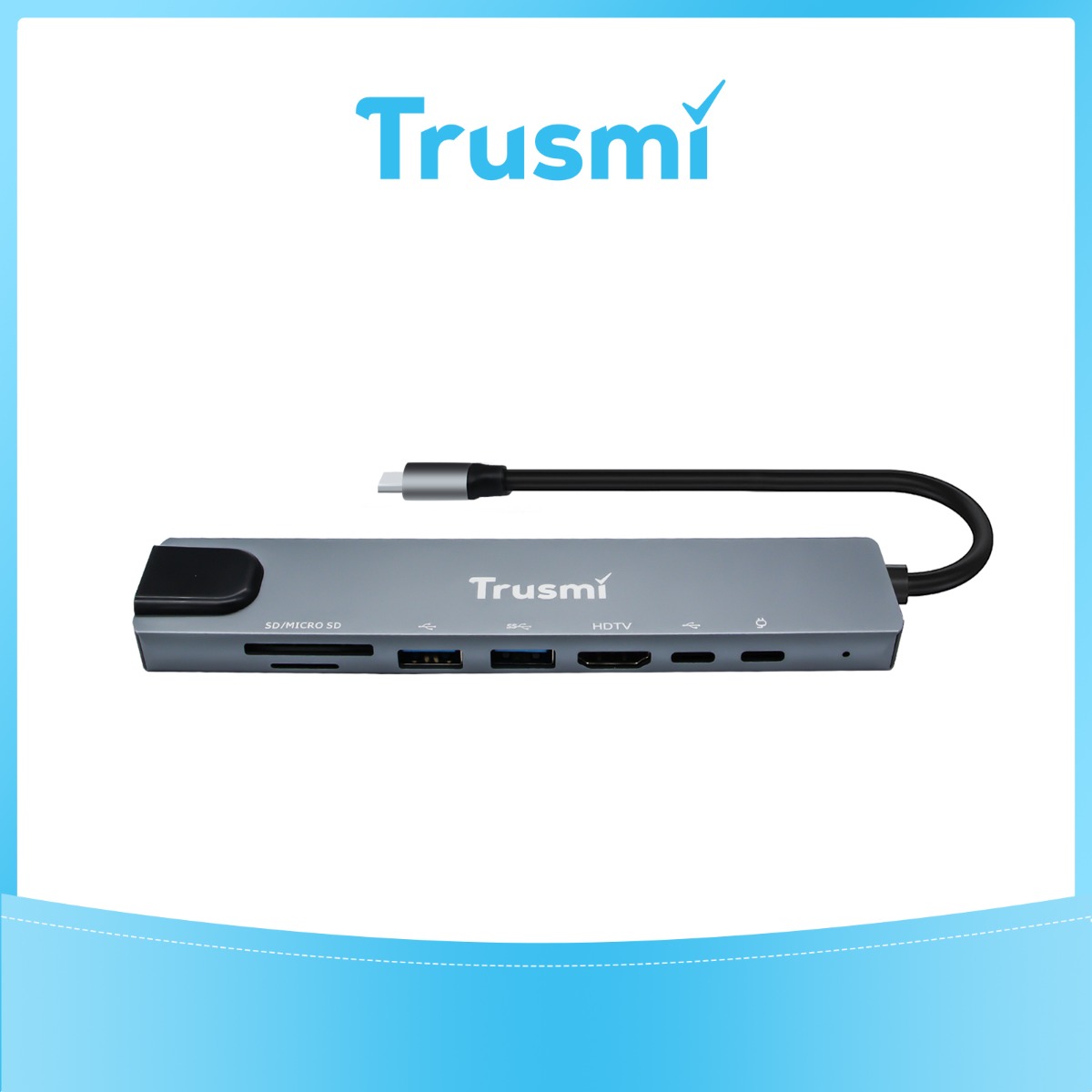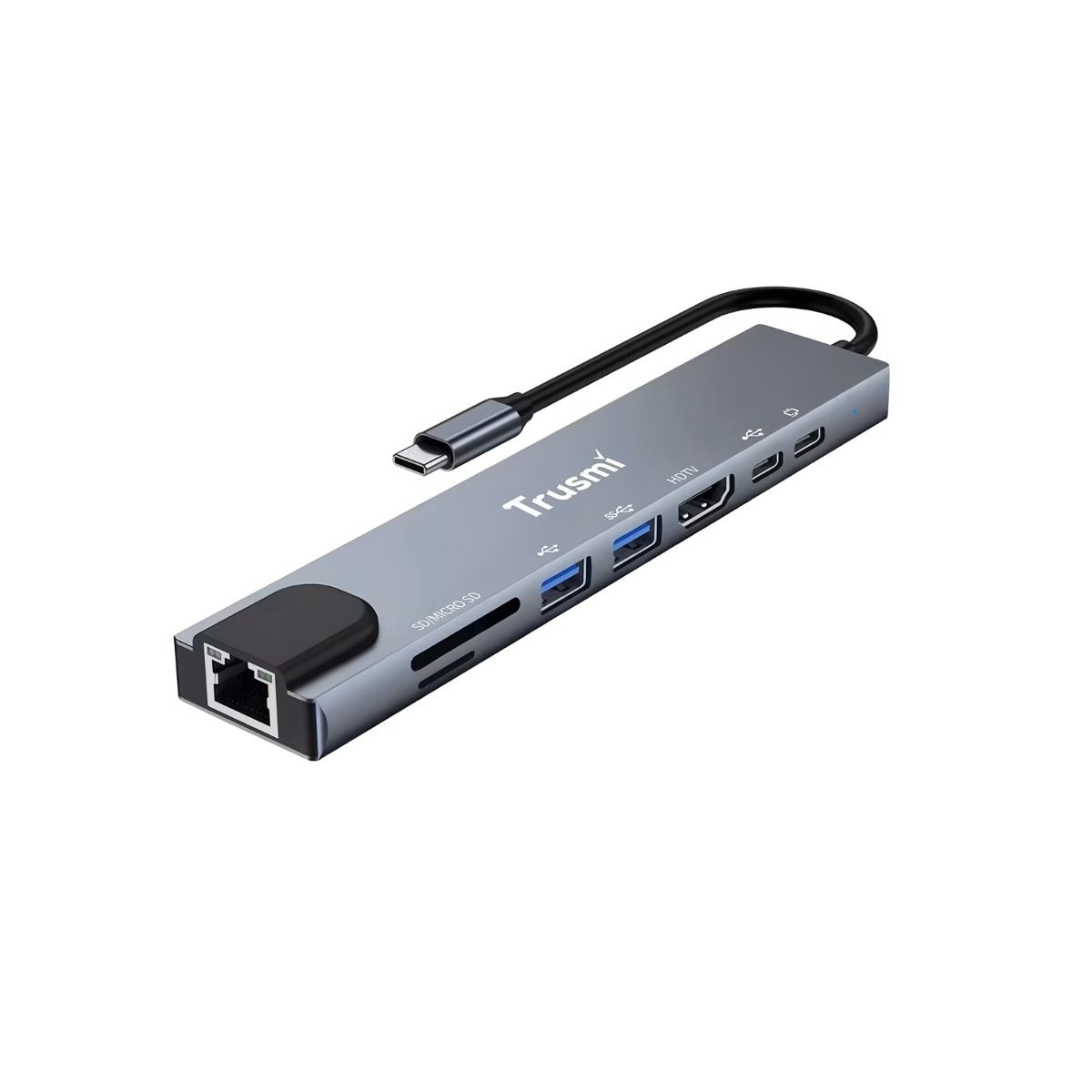 TRUSMI DS01-02 USB C Hub 100W – HDMI, RJ45, USB 3.0×2, Type-C×2, SD/TF Card Reader Adapter