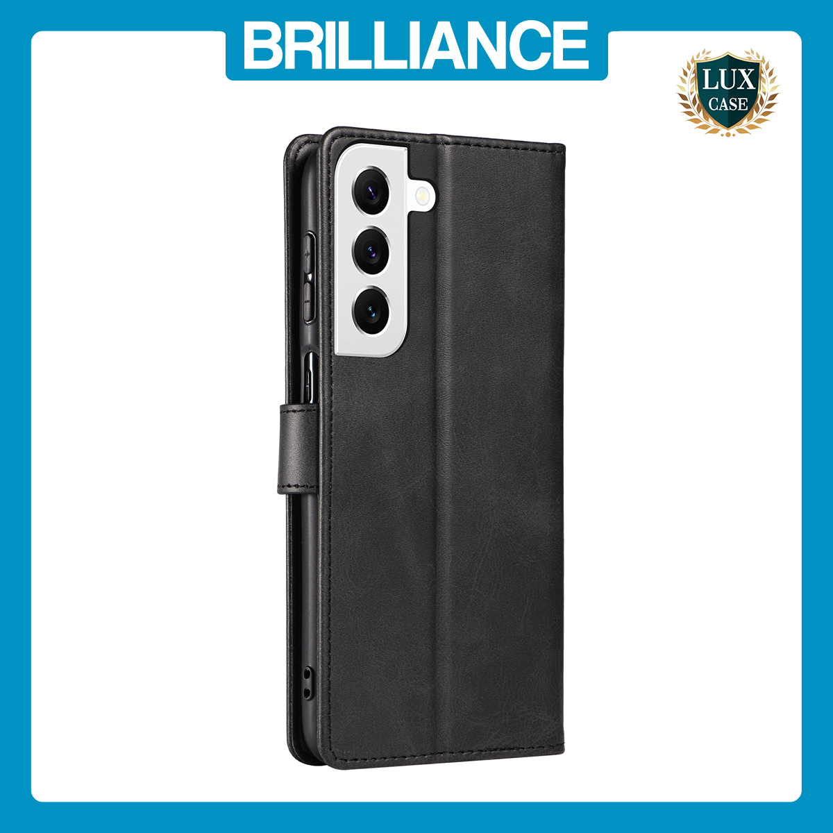 TRUSMI Samsung S23 Cowhide Leather Wallet Case with Card Slot Dark Brown